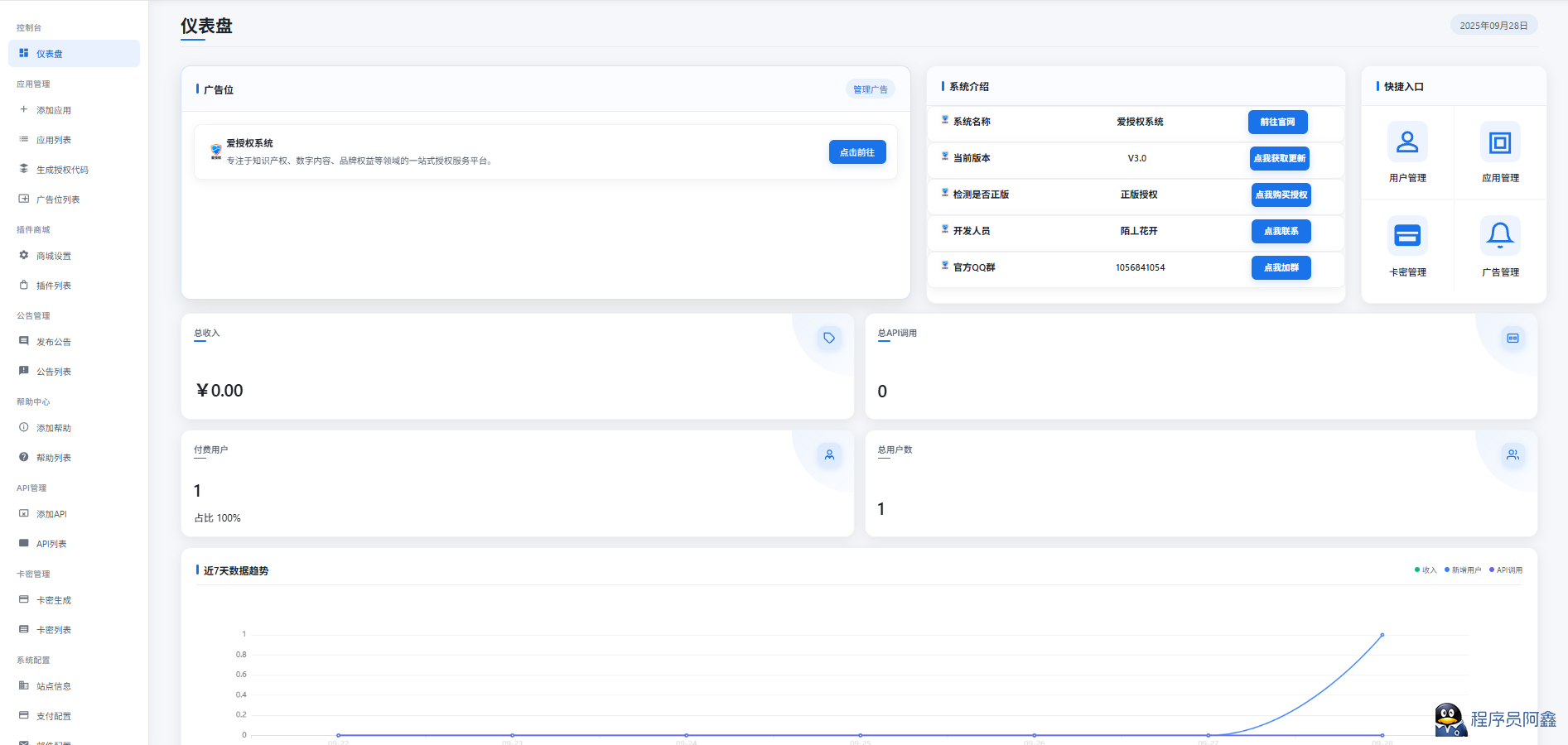 爱授权系统V1.0开源版