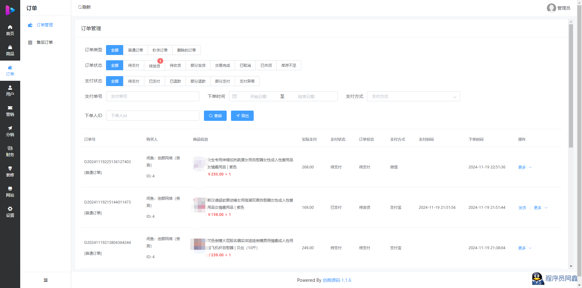 功能很齐全,支持 DIY 自定义前端界面,带一些数据成品站,支持秒杀和优惠券等营销功能,有分销功能