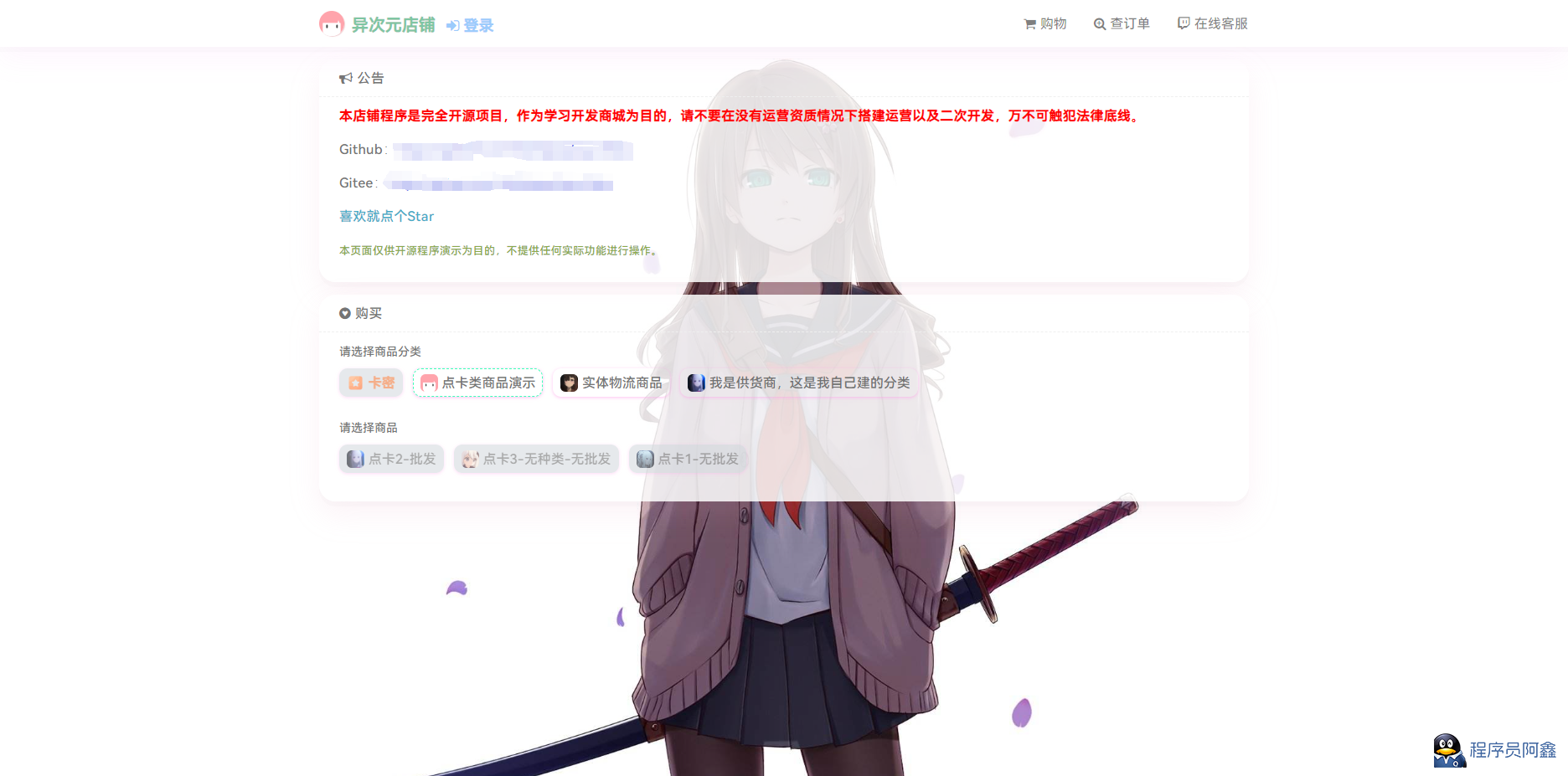 文章 源码分享 异次元发卡系统开源版 程序员阿鑫作者 / 2025年11月14日 / 0 评论 /4 阅读     新知创造生活,技高成就发展! 首页 › 源码分享 ›正文 开源的异次元发卡系统,下载地址:https://github.com/lizhipay/acg-faka 版权说明 文章采用: 《署名-非商业性使用-相同方式共享 4.0 国际 (CC BY-NC-SA 4.0)》许可协议授权。版权声明:未标注转载均为本站原创,转载时请以链接形式注明文章出处。如有侵权、不妥之处,请联系站长删除。敬请谅解! -- 展开阅读全文 --