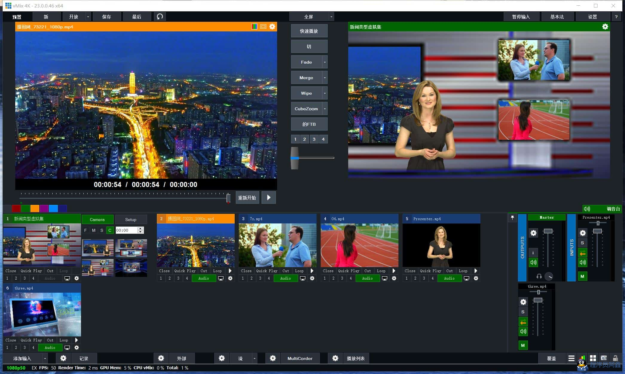 2、支持多机位切换,支持外接切换面板,可设置快捷键切换,支持13种切换过渡效果