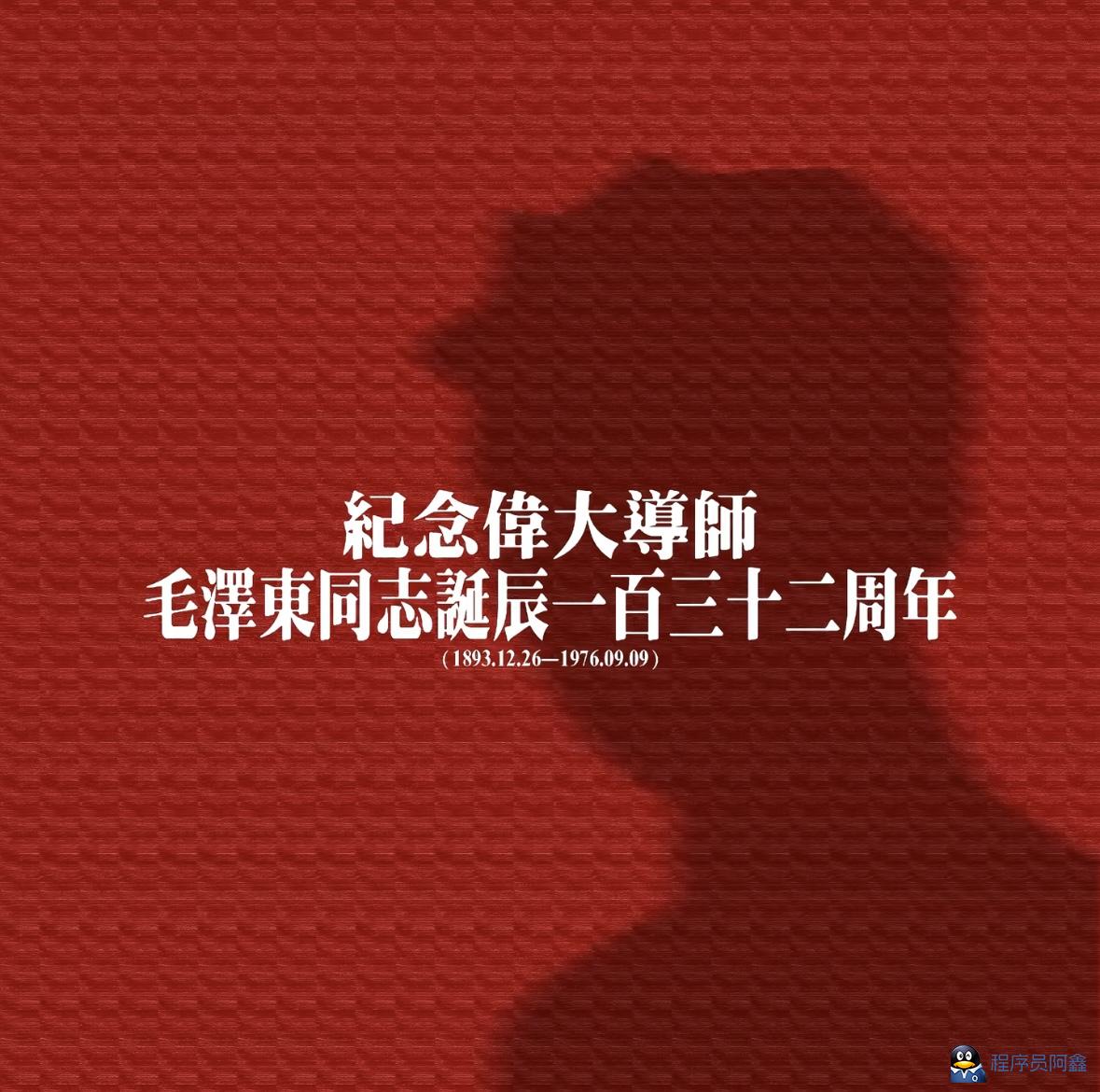 文章 公告 纪念伟大尊师 毛泽东同志诞辰一百三十二周年 程序员阿鑫作者 / 2025年12月26日 / 0 评论 /6 阅读     新知创造生活,技高成就发展! 首页 › 公告 ›正文 2025年12月26日是毛泽东同志诞辰132周年纪念日在此,特纪念伟大尊师 毛泽东同志诞辰一百三十二周年发文 版权说明 文章采用: 《署名-非商业性使用-相同方式共享 4.0 国际 (CC BY-NC-SA 4.0)》许可协议授权。版权声明:本站绝大数资源来自互联网收集,如有侵权、不妥之处,请联系站长删除。敬请谅解! -- 展开阅读全文 --