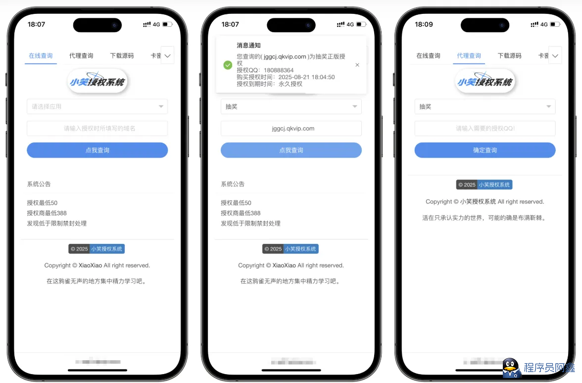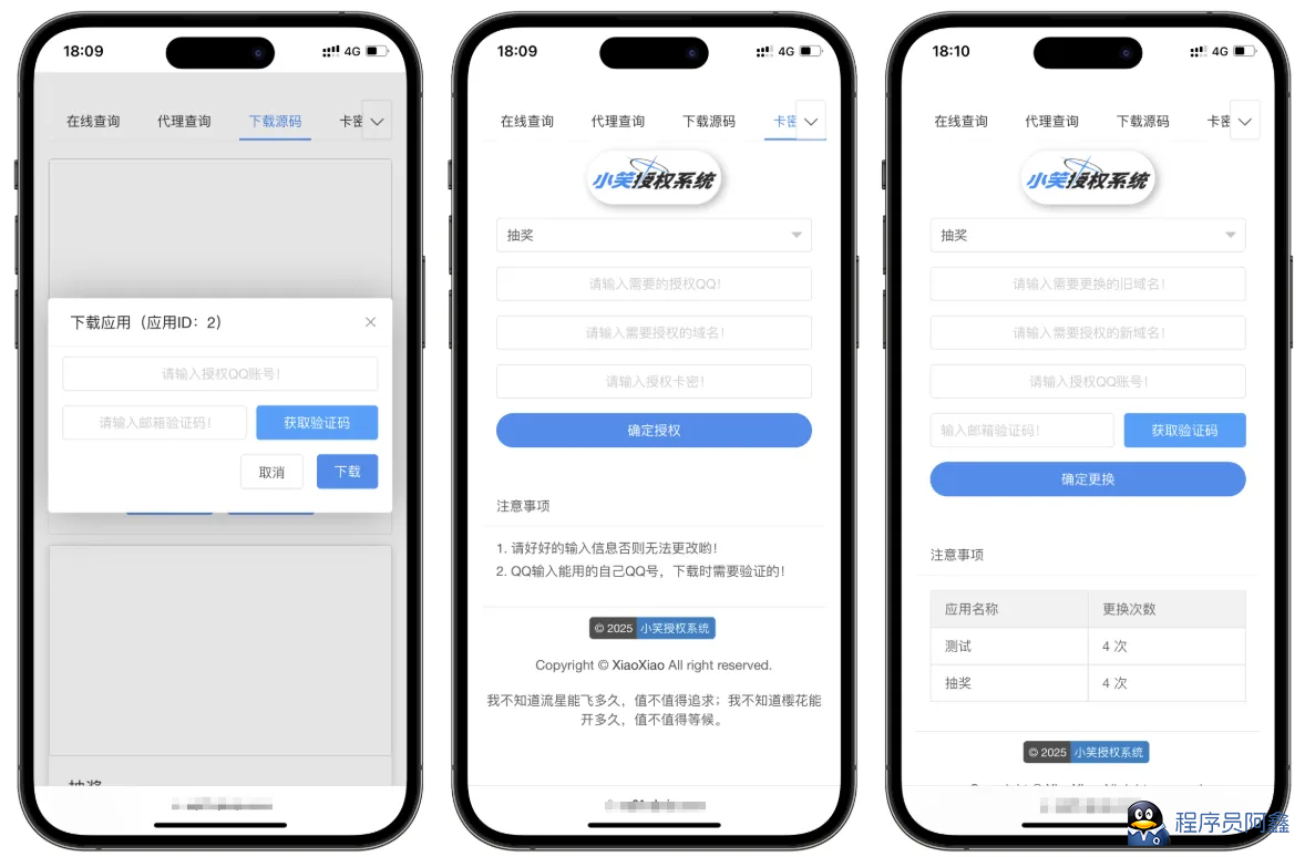 - 支持卡密授权,支持自助更换授权,支持API授权接口