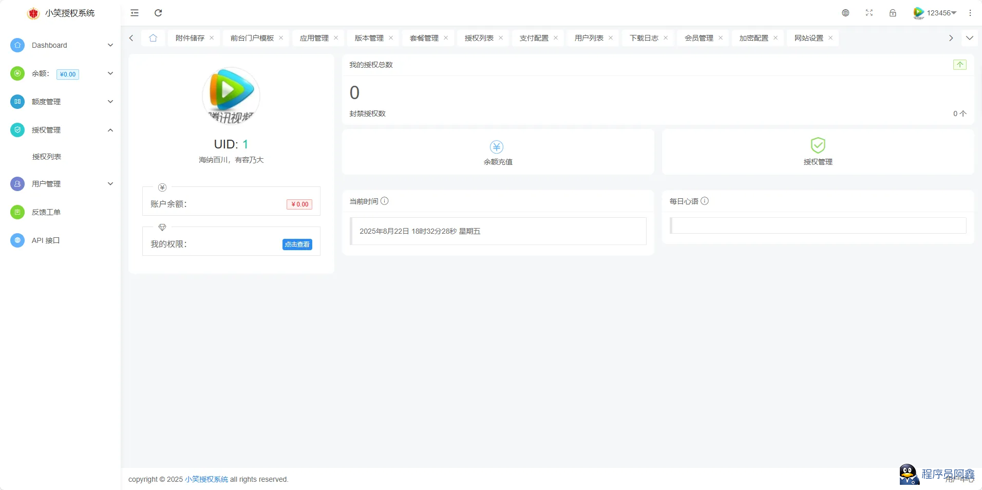 小笑授权系统旨在为个人开发者或者开发团队提供一种高效便捷的管理个人源码的方案。通过小笑多应用授权系统,您可以随时随地的面向您的用户添加授权、管理授权。此外还可以通过简单的配置实现源码的在线下载、用户远程的在线更新、盗版系统的追踪打击。所以说,使用小笑授权系统便可极大程度的方便您的系统开发。