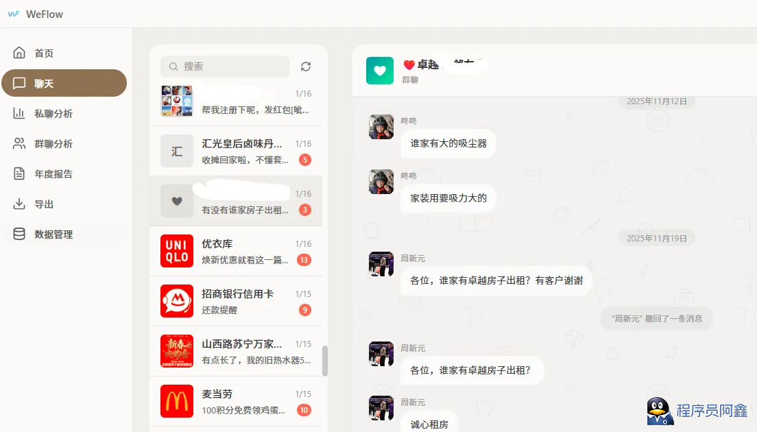 WeFlow 是一个完全本地的微信实时聊天记录查看、分析与导出工具。它可以实时获取你的微信聊天记录并将其导出,还可以根据你的聊天记录为你生成独一无二的分析报告。安装时按照指引一步步操作即可